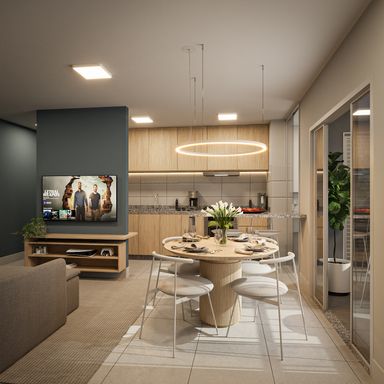Apartamentos de 59,27m²: O equilíbrio ideal entre espaço e funcionalidade. Ambientes aconchegantes, pensados para quem busca praticidade sem abrir mão do conforto. Perfeito para casais, solteiros ou pequenas famílias que desejam um lar fácil de cuidar e cheio de personalidade.