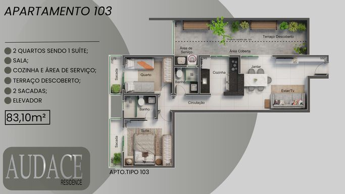 No Audace Residence, você encontra o espaço perfeito para começar sua nova história. Com entrega prevista para janeiro de 2026.