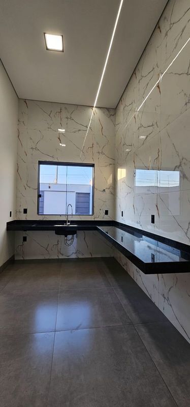 O acabamento é um diferencial: porcelanato em todos os ambientes, nichos com iluminação em LED nos banheiros, cubas sobrepostas em porcelana e pendentes que destacam o bom gosto nos detalhes. Toda a casa é iluminada com LED, desde a sala e cozinha até o corredor e o portão, reforçando o cuidado e a sofisticação em cada espaço.