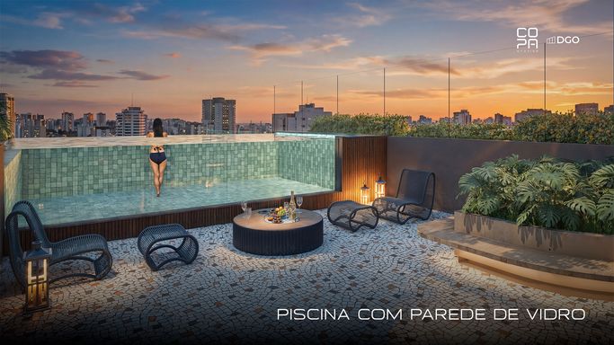 O grande diferencial competitivo para o investidor reside no Rooftop de 1.200m², que funciona como um clube exclusivo. Com uma piscina de borda infinita e parede de vidro, Sky Bar, Sky Lounge para 200 pessoas, cinema e academia, o COPA STUDIOS garante uma experiência de hospedagem superior, permitindo a cobrança de diárias premium e garantindo uma taxa de ocupação acima da média do mercado.