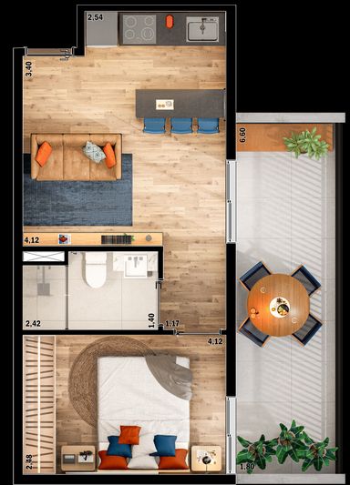 • Studio Plus (42m²): Espaço otimizado para acomodar até 4 pessoas.