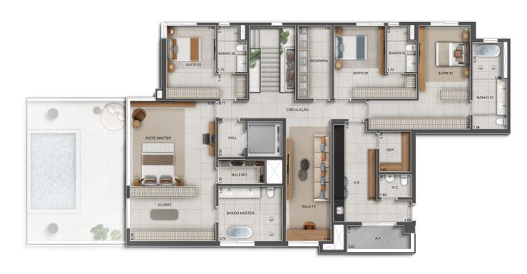 Esta mansão suspensa é a tradução máxima da "Arquitetura do Silêncio". Com a curadoria impecável de Anastassiadis, Tellini Vontobel e Carlos Rossi, o duplex em andar alto oferece uma amplitude sem precedentes. São 539m² de espaços fluidos e integrados, onde o pé-direito imponente e o uso magistral de elementos puros como a pedra, a madeira e o vidro criam uma simetria perfeita entre o conforto absoluto e a natureza circundante. É a liberdade espacial de uma casa de campo com a segurança e o prestígio de um edifício de altíssimo padrão.
